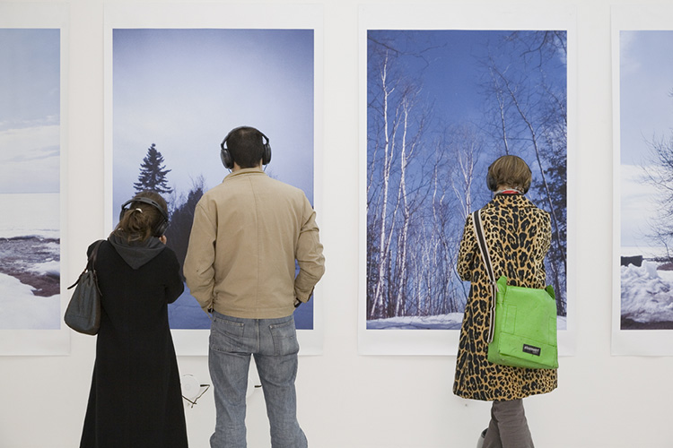 Les visiteurs de l’exposition sont invités à se placer devant chaque photo et à écouter au casque le paysage sonore qui lui est associé. L’écoute au casque ainsi que les tirages de grand format permettent au visiteur de s’immerger totalement dans chaque paysage et se laisser porter par son imaginaire et créer son propre film.