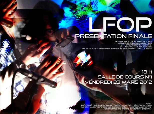 Low Frequency Oscillation Pictures, atelier de création audio/vidéo proposé par N. Germain, ESAM-C2 2011-2012. Etudiants de 2e, 3e et 4e années Options Art & Com – Site de Cherbourg – Invité : David Neaud