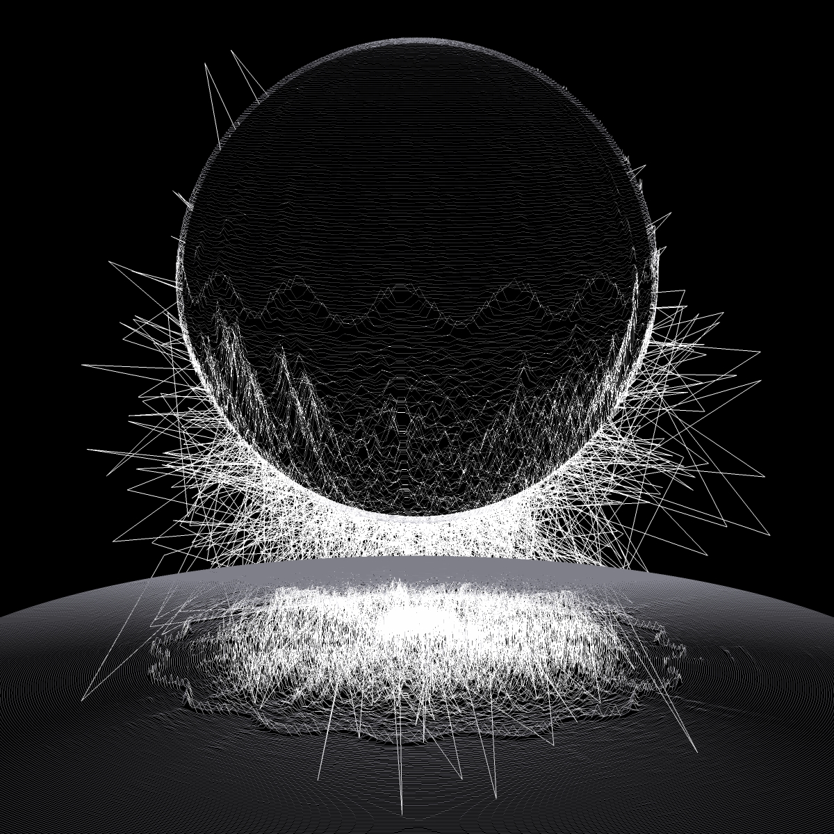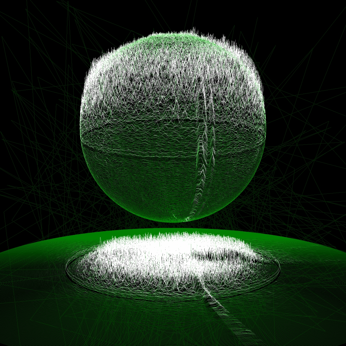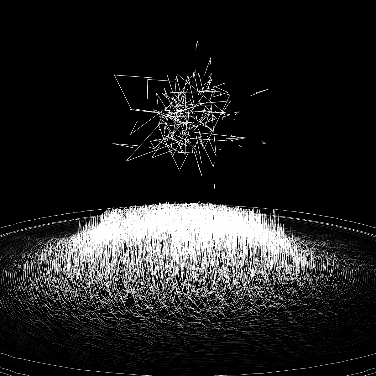 Le public est invité à observer le son sous forme de sonogrammes en trois dimensions, son qui est filtré aléatoirement par bandes de fréquences, et qui laisse parfois apparaître des formes étranges et fantomatiques.