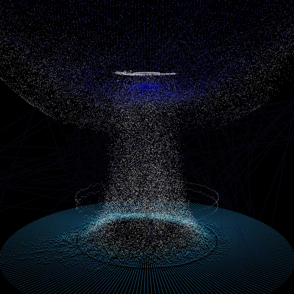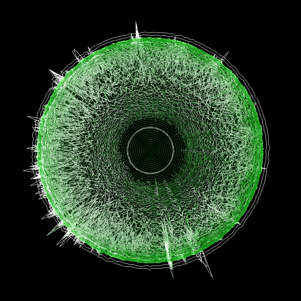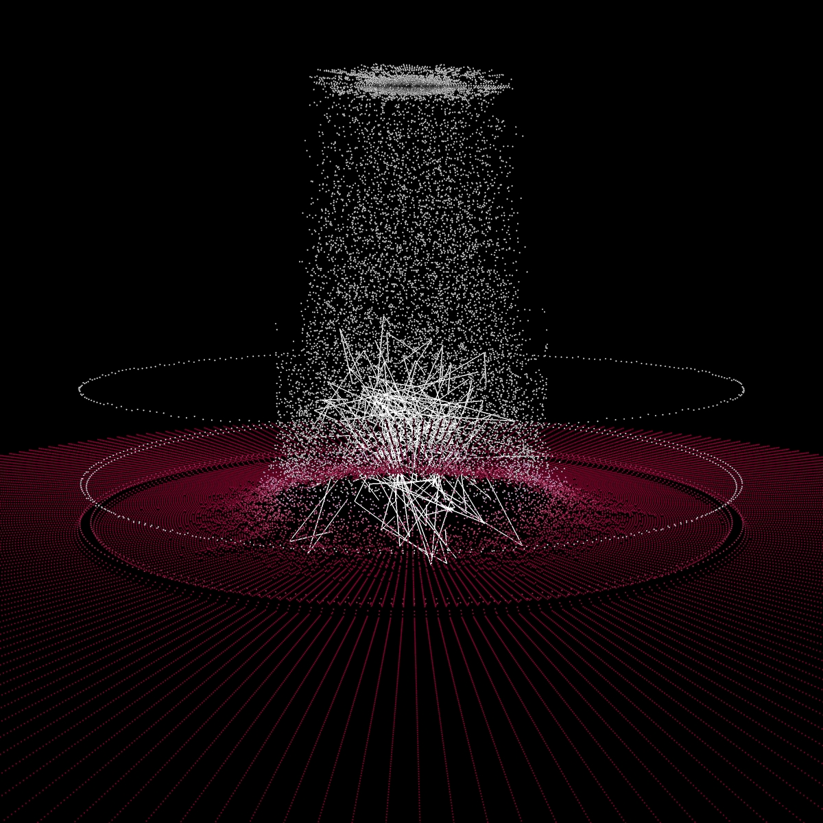 Le public est invité à observer le son sous forme de sonogrammes en trois dimensions, son qui est filtré aléatoirement par bandes de fréquences, et qui laisse parfois apparaître des formes étranges et fantomatiques.